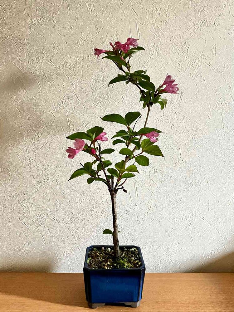 《今日のお花》ウツギ、盆栽に仕立て中。枝振りが直線的で上に上に伸びたがるので形を整えるのが難しいです💦