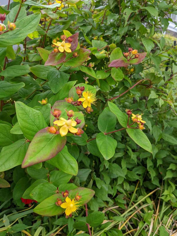 お隣さんち、畑にヒペリカム。うちのはまだ、咲いていない!🙄🤔日当たりは同じなのに、なぜ?🤣😅☀️😱