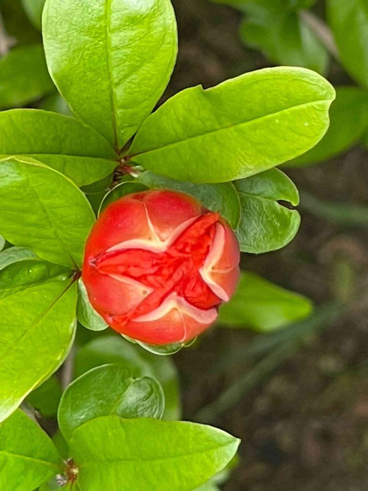 ザクロは蕾の頃からお尻のほうが、割れている様にみえます。ビックリ⁉️