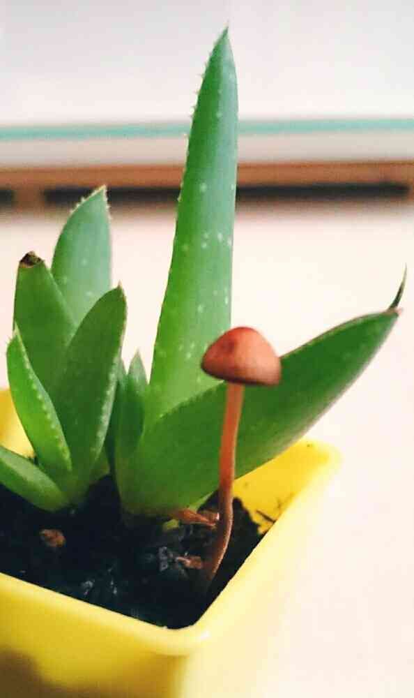 昨日ダイソーからお迎えしたアロエ?の土からキノコがっ❗(笑)