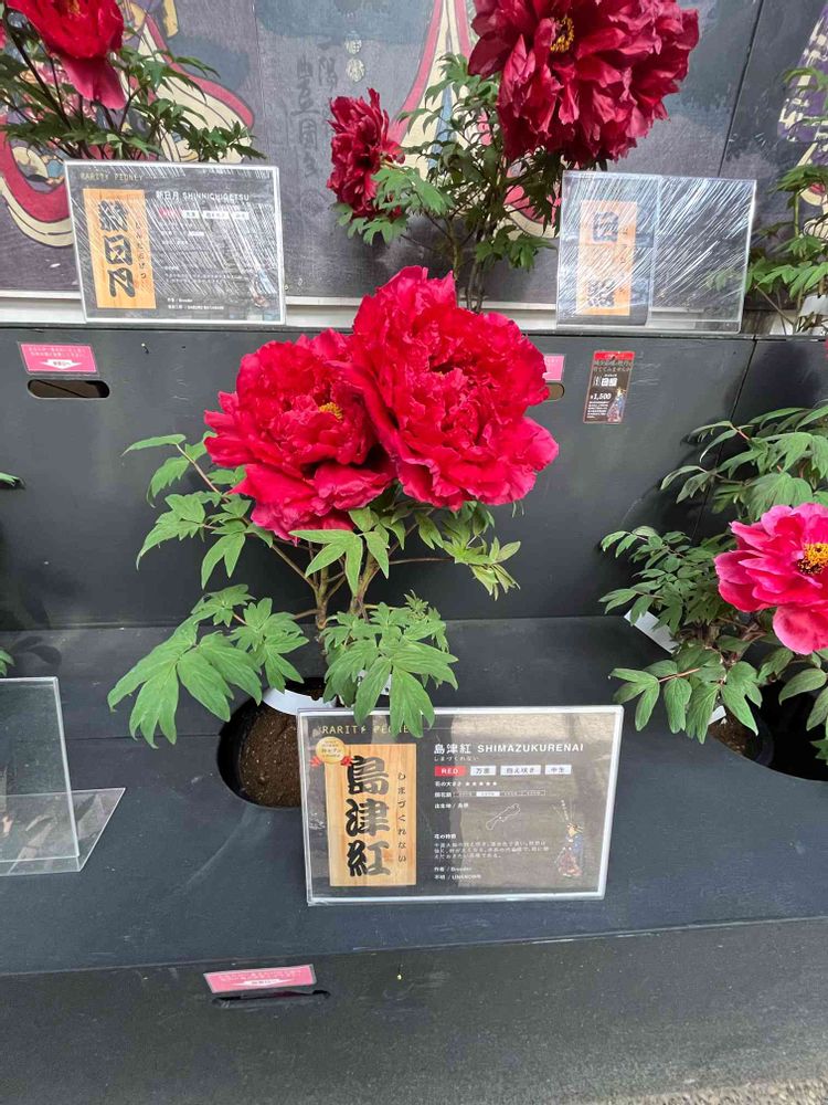 GWに松江の由志園へ牡丹を見に行きました。展示されていた100種類の中で一番気に入ったのがこれ、「島津紅」です。園内の池や小川はこうした立派な牡丹の切花で覆い尽くされていて、新緑と青空にも映えて、今回の往復20時間のドライブを忘れがたい思い出にしてくれました。