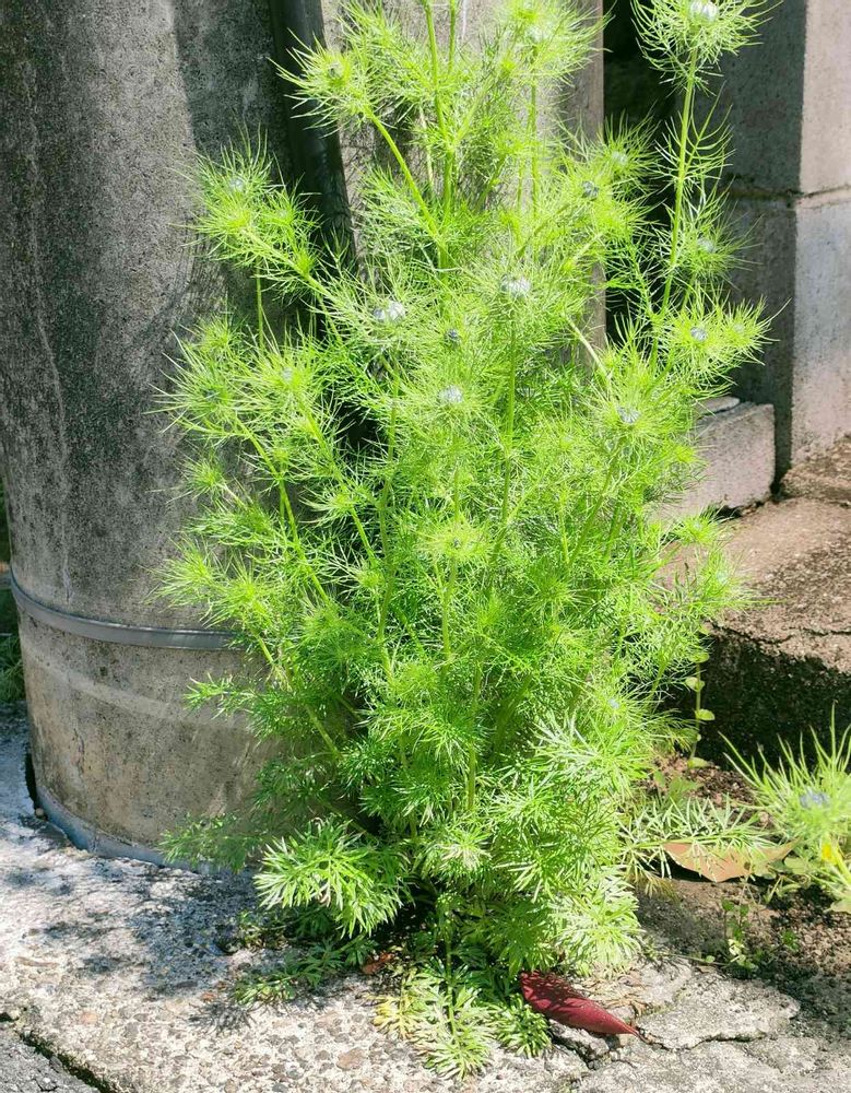 ど根性ニゲラ あちこちのコンクリートの隙間から大きく育った苗が顔を出していました🤗🌼