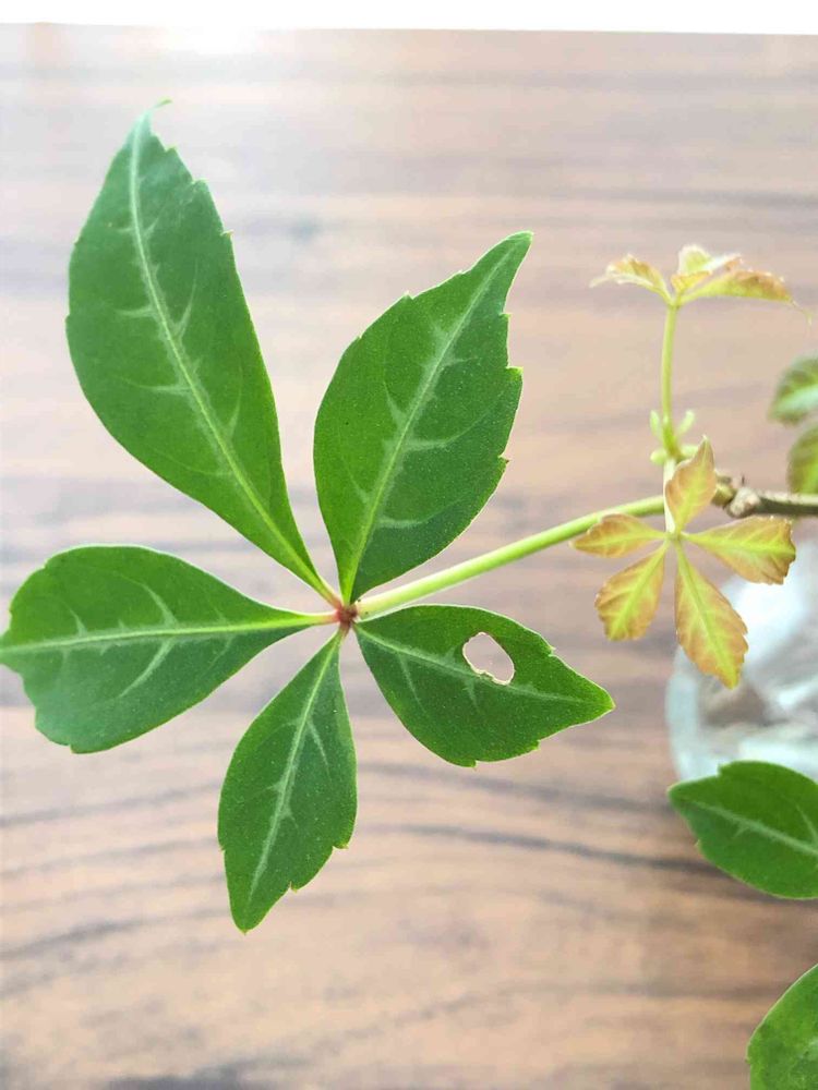 葉っぱの虫食いあと。