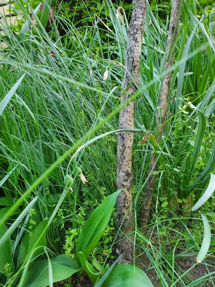 特に背の高い葉(鈴蘭水仙など最近まで咲いている)の間からなりすまして伸びているのです。