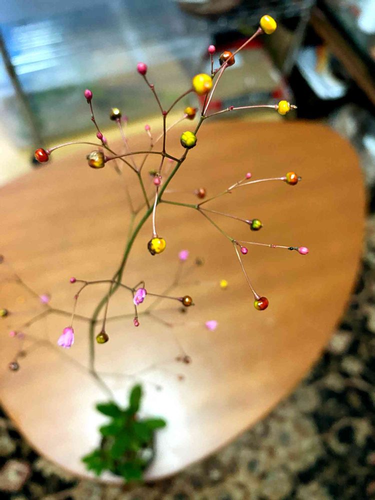 GW期間中で忙しくて見て無かったから正しくないかもしれんけど花はピンクで花が終わると黄色になるのかな?