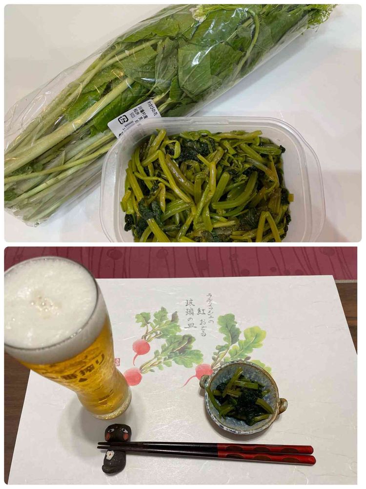 昨日買って来たワサビの茎とは醤油漬け完成✨お先に😋🍺辛味が美味い❣️