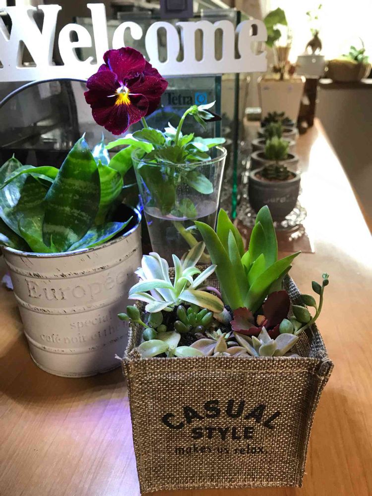 ポカポカ暖かくて多肉ᑦᑋᵃᵑ達グンと成長してて(*´∇︎`)ノ形整えるのにカットしていた子達を麻のカゴに