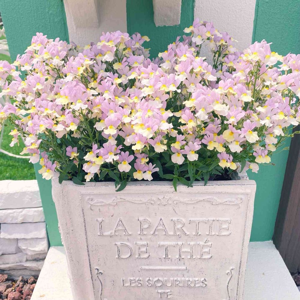私も同じ鉢を持っているのですが、ネメシアさんを入れると優しい感じの鉢植えになりますね✨