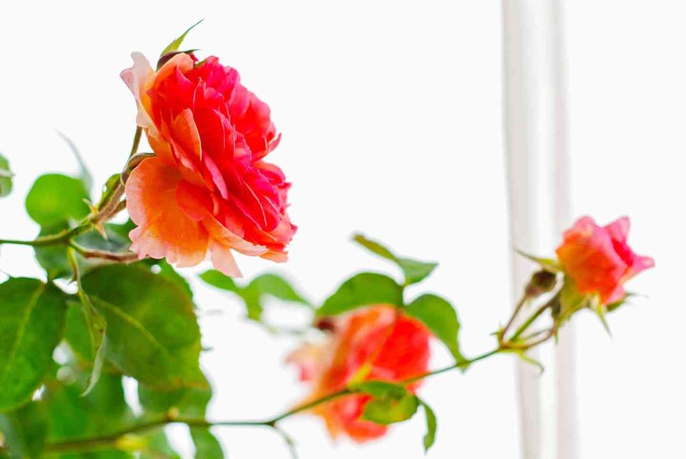 もともとは1年前にお迎えした「おへやで育てるばら」という小さな株でしたが、こんなにいくつも花やつぼみをつけるほど大きく立派になりました✨