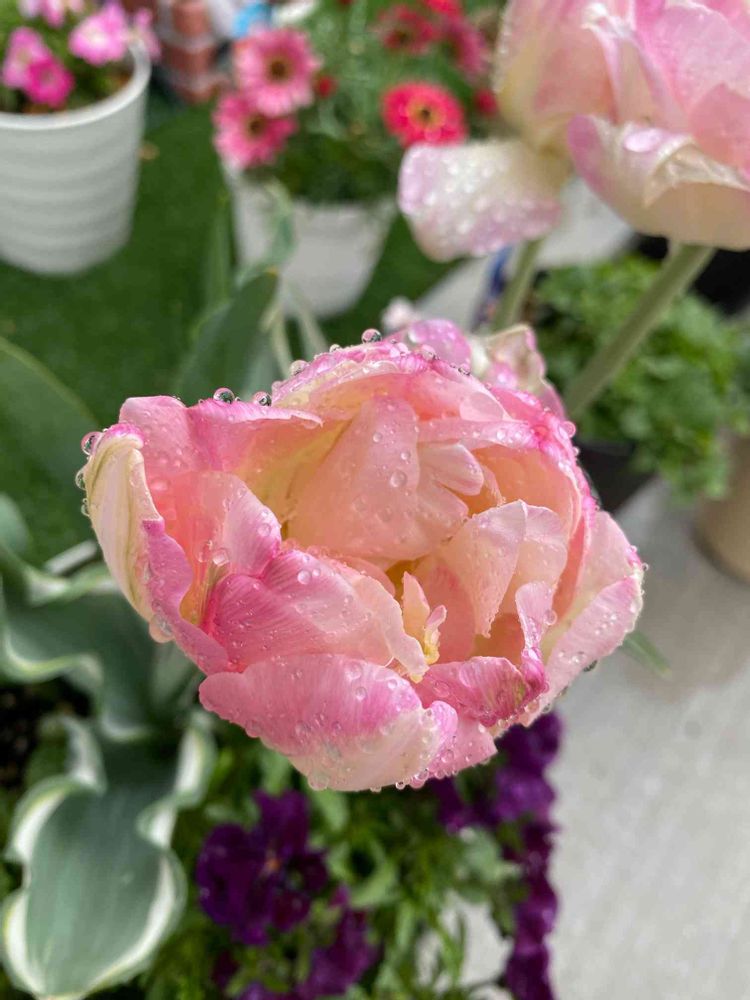 ダブルデッカーにした八重咲きのチューリップ🌷.*