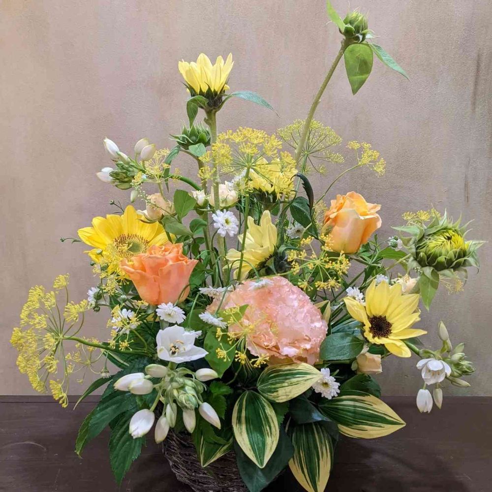 向日葵が10輪入っていますがまだ夏ではないのでなるべく目立たない様に作りましたが😆