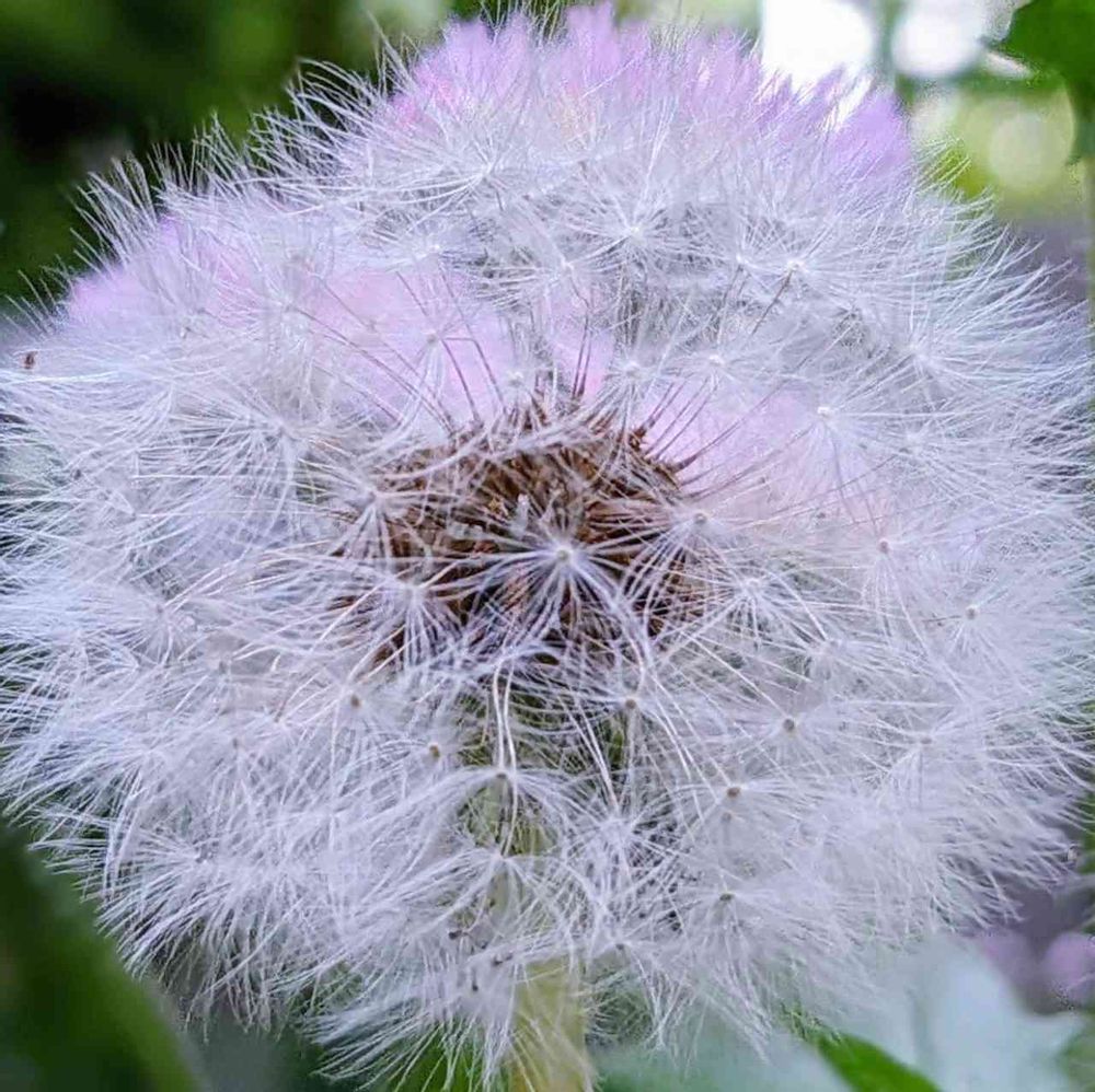 ハルジオンのピンク色を背景に、たんぽぽの綿毛を染めるなんて💗