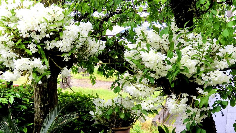 枝垂れ梅やヒトツバの木に着生させて、