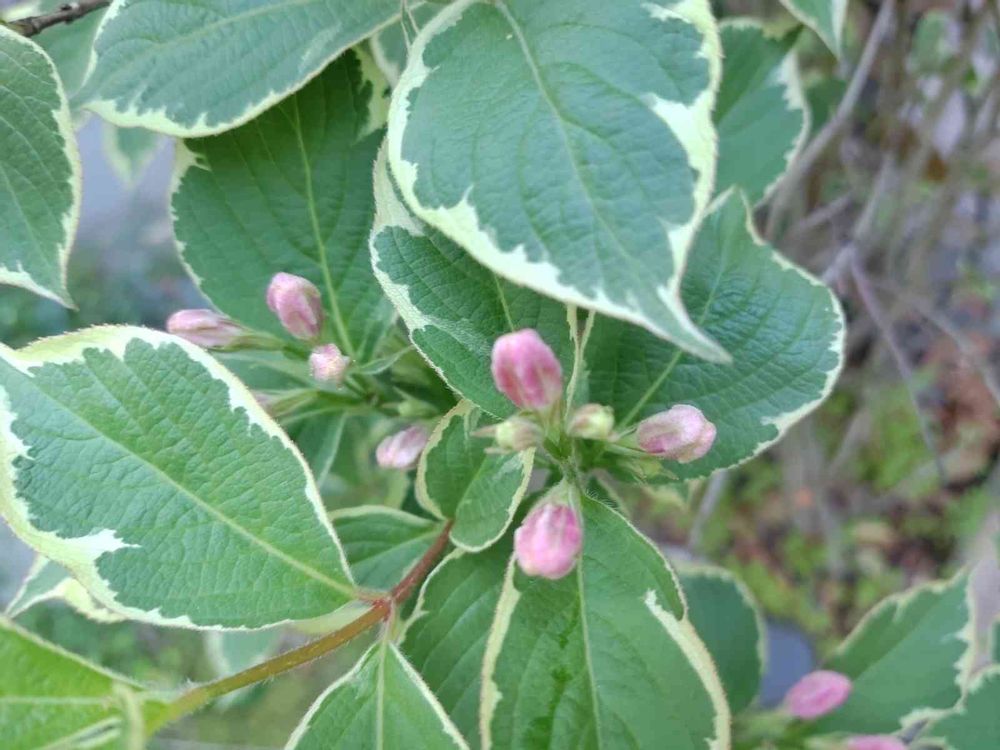 どちらかと言うとハコネウツギをうすピンクにして斑入り葉にした感じ。