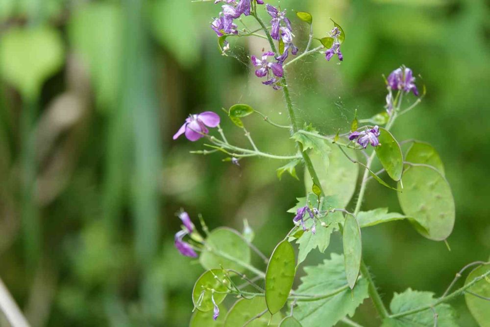 自然公園の目的地の手前、オオアラセイトウが枯れたの?と気になりながら歩を進めました。帰りがけにやはり気になり望遠で覗くと何やら全く違う花です。帰宅後、合田草、別名銀貨草、銀扇草と判りました。明治34年、(現)芸大の合田清教授がフランスから種子を持ち帰ったのが名前の由来。個性的な実にすっかり魅了されました