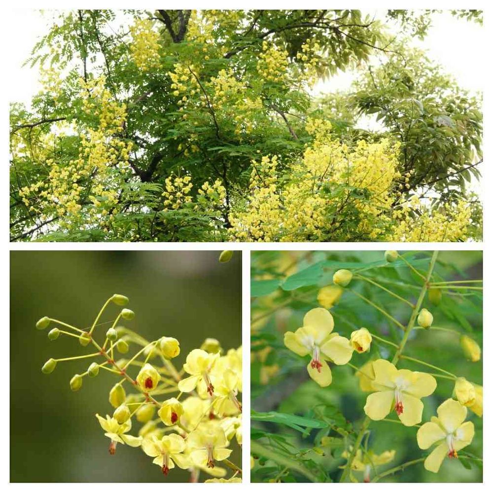 何度も来ているのに花をみたのは初めてです。大きな棘だらけの無骨な大木の名札だけを見ていました。こんなに華やかな花が咲いていました。東南アジアやハワイで見たゴールデンシャワーにも似ています、同じマメ科です