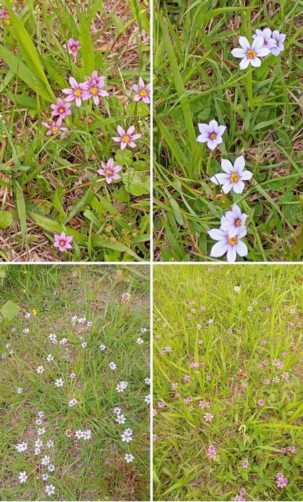 ピンクのノイバラの徒長枝を貰いに川辺に 土手の上にはニワセキショウが咲いてかわいい花が風に揺れていました。🤗
