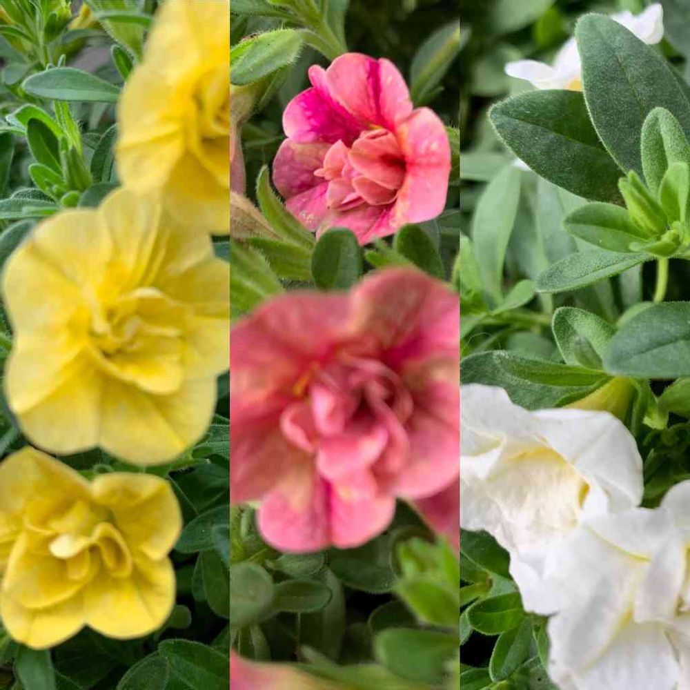 おはようございます😃昨日お花屋さんで出会ったカリブラコア三兄弟。イケメン過ぎて連れ帰ってしまった😅ティフォシーダブルシリーズのディープイエロー、ピーチローズ、ホワイトです。今朝早くひと雨降ったようで地面が濡れています。水遣りの手間が省けました😆皆さま良い週末を。。。