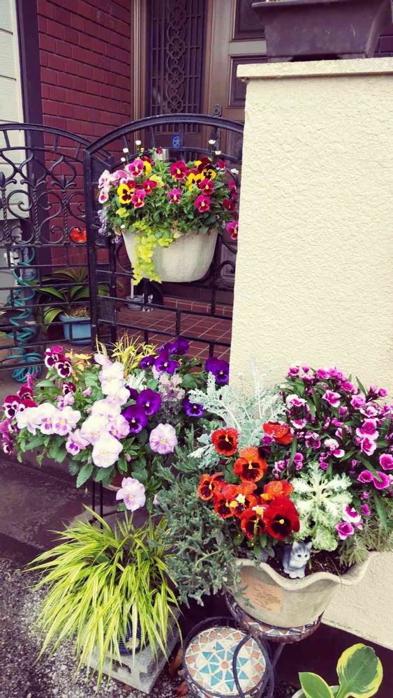 昨年12月に爆買したお花達がリニューアルしました。ストックは終り、葉牡丹、パンジー、ビオラは切戻して、風知草もギボウシも出てきて賑やかな玄関💓😆