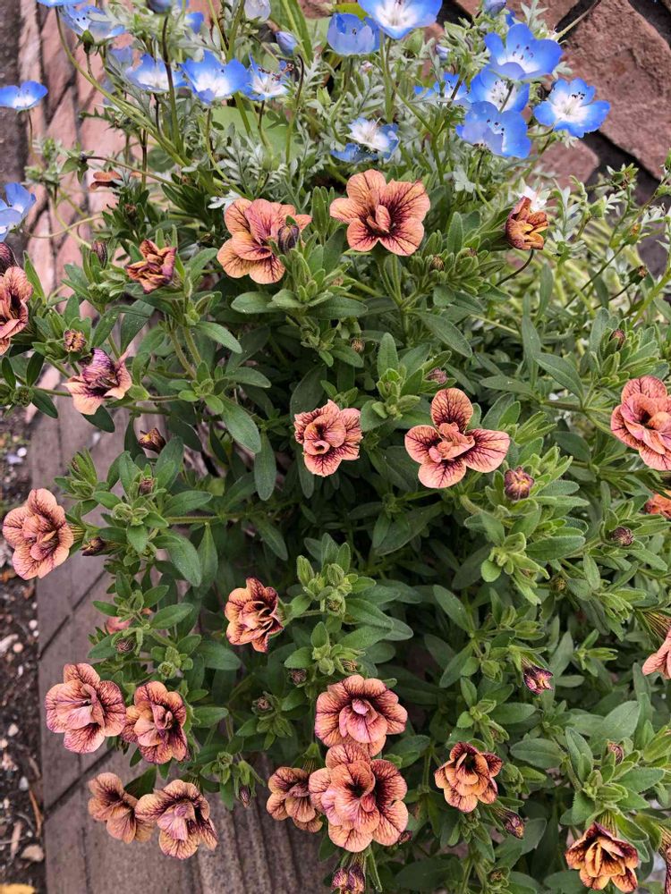 さて今日はネモフィラちゃんの横に渋〜いお花がモリモリ咲き出しました😳😳😳