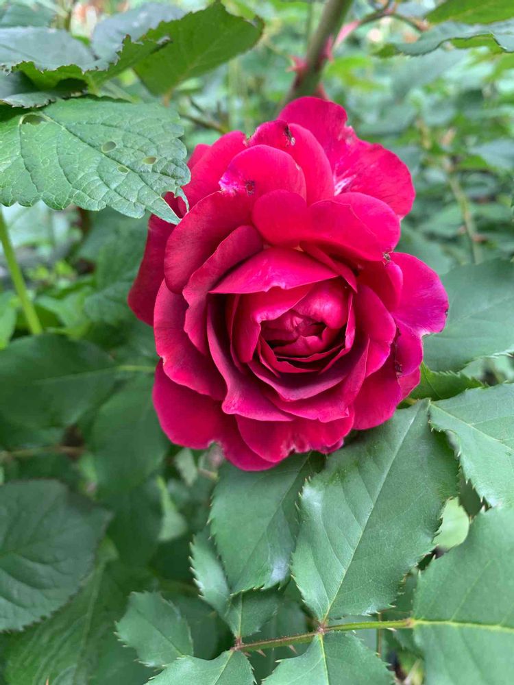 このバラは、赤バラにしては珍しくラズベリーの様なフルーツの香りがします。樹勢も強くオススメです。