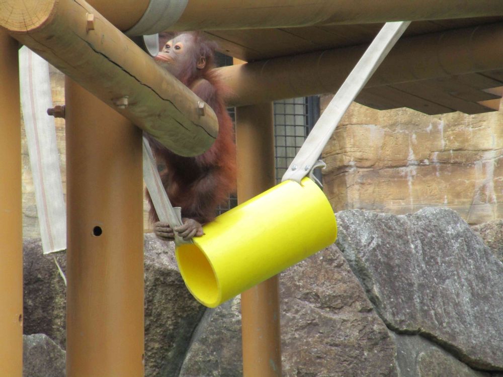 今日も2枚だけww昨日のpic、落ちそうになったオランウータン(昨日タグ間違えてました!)のアピ君、無事落ちずに得意げの顔♪足もしっかり紐を捕まえてます。