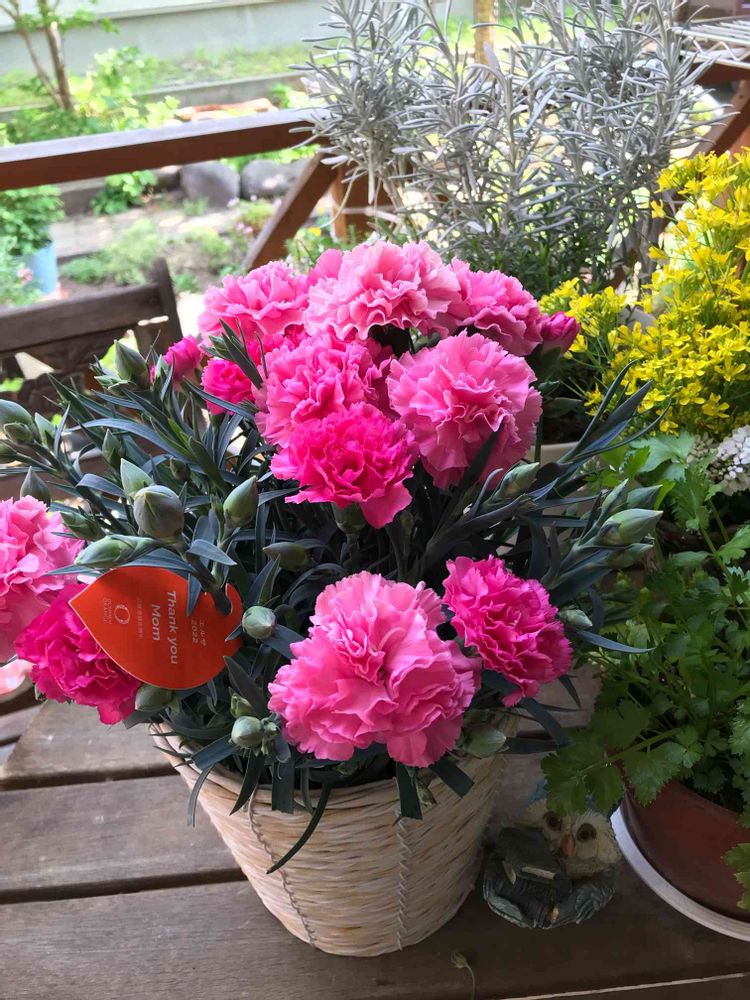 都会に住む娘がカーネーションを贈ってくれました❣️😊🎶 今年はピンクなんだね〜👍なかなか可愛い💕