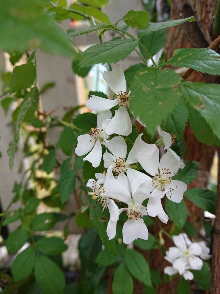 庭に咲いた花です。枝のトゲから今までバラだと思っていました。何でしょうか?