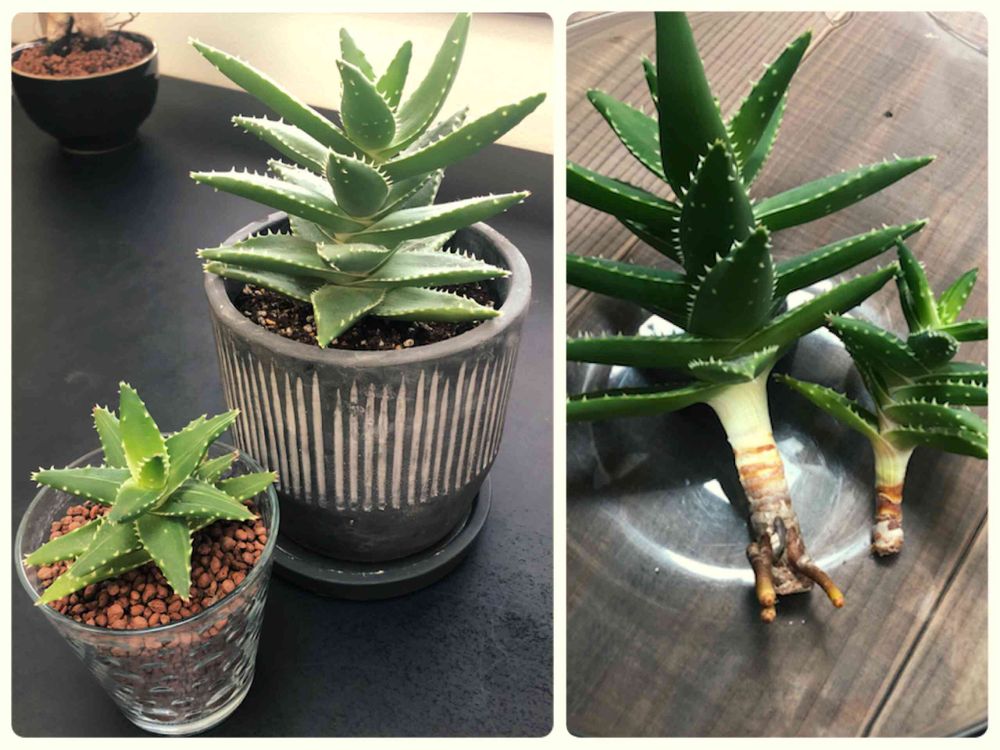 アイコンにしてる不夜城が徒長してたので胴切りして乾かしてた植え替えしました。アロエをハイドロカルチャーで育てる無茶をしてたけどなんとかなったので子株は引きつづきハイドロ、親株は多肉用の土に変更。