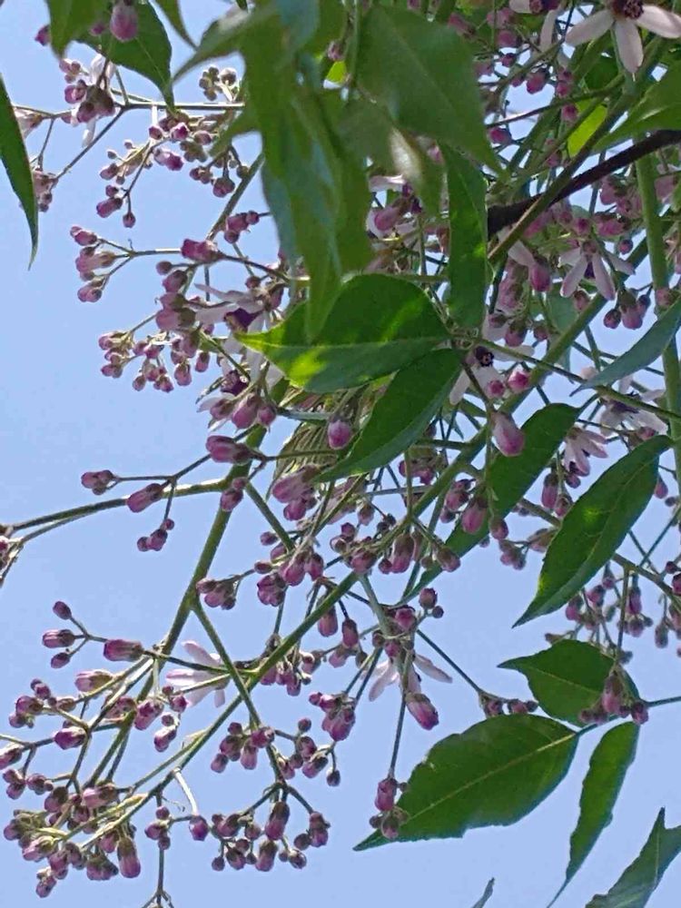 🤍💜栴檀(センダン科)の花が、咲き始めています