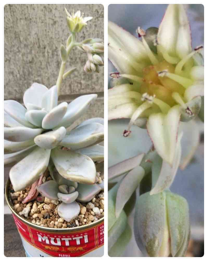多分この子はエケベリアでなくてグラプトペタルムだと思います。エケベリアだと花がスズランみたいな釣鐘型🔔なのです。