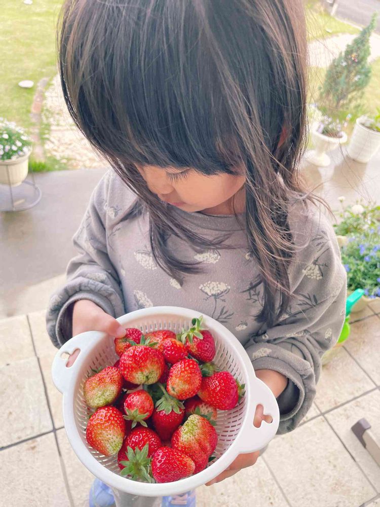 本日の収穫🍓毎日少しずつ取れる数が増えてます✨娘と一緒に庭の畑で毎日いちご狩りをするのが最近の日課です😊💕