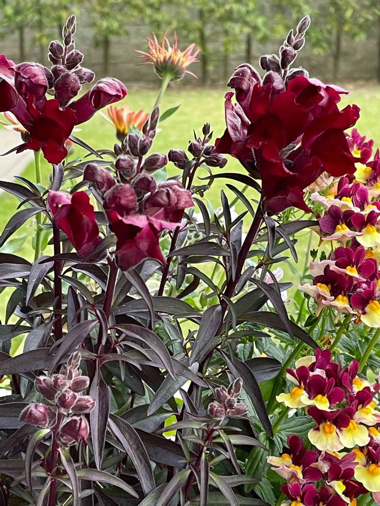 銅葉金魚草、素敵ですネ❢ネメシアの色とベストマッチ❢良いですね❢🧡💜🧡