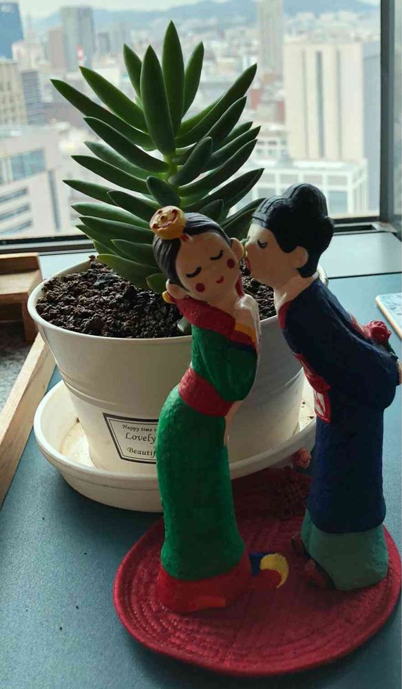 これは、4日前行った神戸市役所24階の展望ロビーにある韓国料理レストラン百済にて。多肉ちゃんと愛らしいフィギュアをパチリ。残念ながら多肉ちゃんの名前は分からないですが…。ここに行かれた方なら神戸港と六甲の景色が堪能できますね。次回は夜間に行ってみたいなあ。それにこの日は晴れて欲しかったがあいにくの曇天!残念だなあ‼︎😉