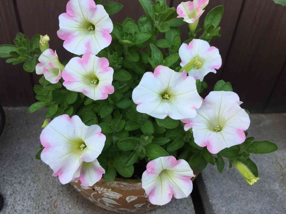 4/17にお迎えしたサントリーさんのサフィニアアート ももいろハート🌸🌸ですが、買った時はほとんど白くてピンクがほんの少しだけでしたが、やっと少しピンクのハートがみえてきました😅