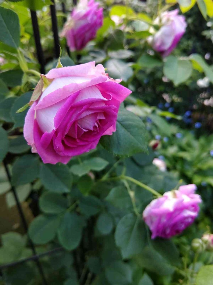 ローズピンクに裏側が白のリバーシブルカラーのコロンと咲く可愛いバラです💞