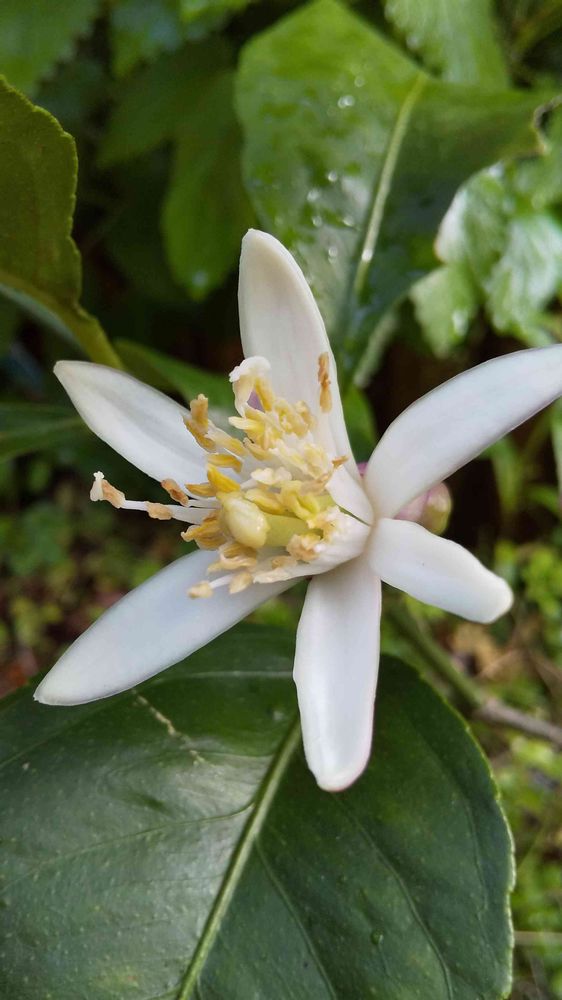 我が家の🍋レモンの花一輪咲きました。3年目にして初めてです。実るのか否か…ですわ😅
