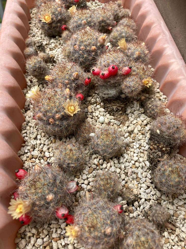 たくさんついた赤い実とのコラボになるとは思わなかった。ちょっとキモカワ〜😆赤い実はほっといたら弾けて無くなってきています。と、言う事は実の中の種が落ちてまた……サボテンが増えるのですね(⑉´ᯅ`⑉)💦増えるの❓💦ひぇ〜🤣