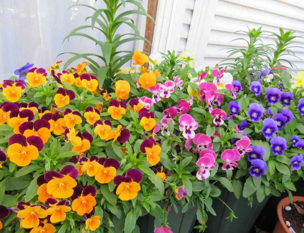 日曜ビタミンカラー🎶去年の9月に種まきし、百合の鉢に植えこんだビオラが最盛期です😁定植が遅れたのでなかなかこんもりとならなかったのですが、苗から育てた方のパンジー、ビオラがほぼ咲き終わった頃から入れ替わりのように元気に咲いてくれています(*^▽^*)