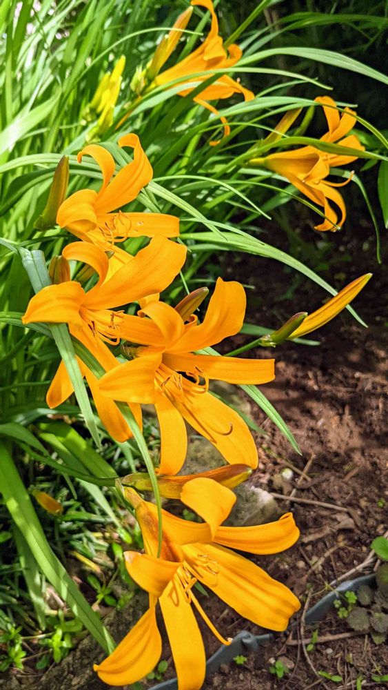 全体的に丸くこんもりした姿でしなやかに細い葉を垂らしてヒメカンゾウが今年も咲きました。