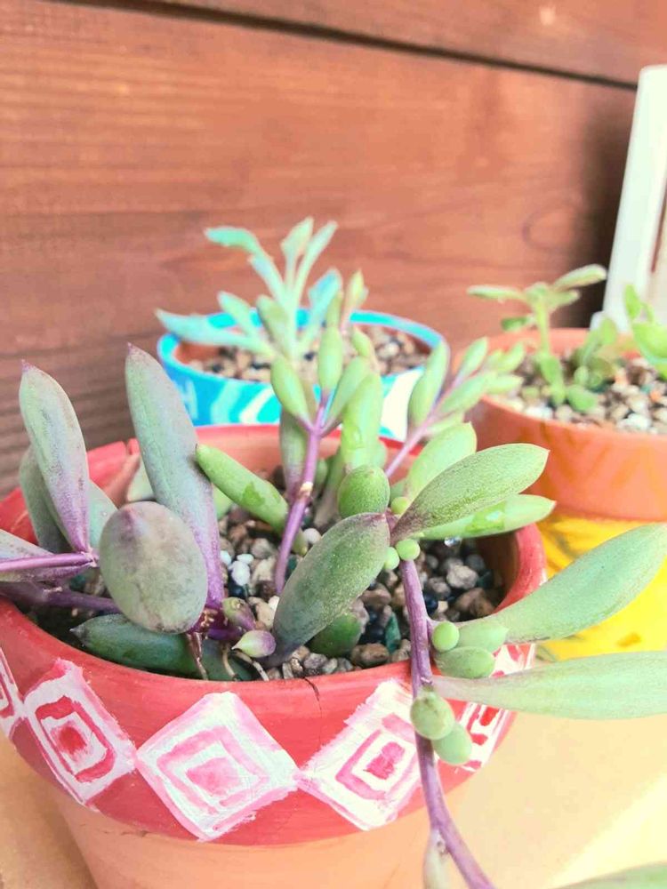 このテラコッタ鉢もアクリル絵の具でトライバル柄を描きました!