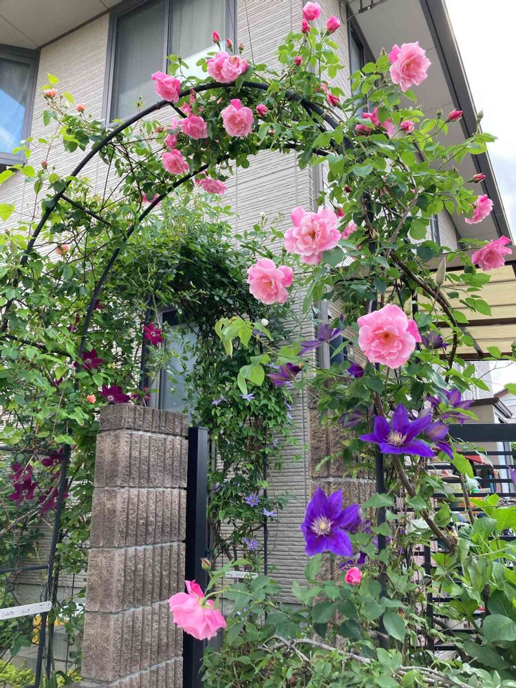 同じく近所のオープンガーデンです‼️スパニッシュビューティーとクレマチスが相性バツグン💕ご紹介No.2