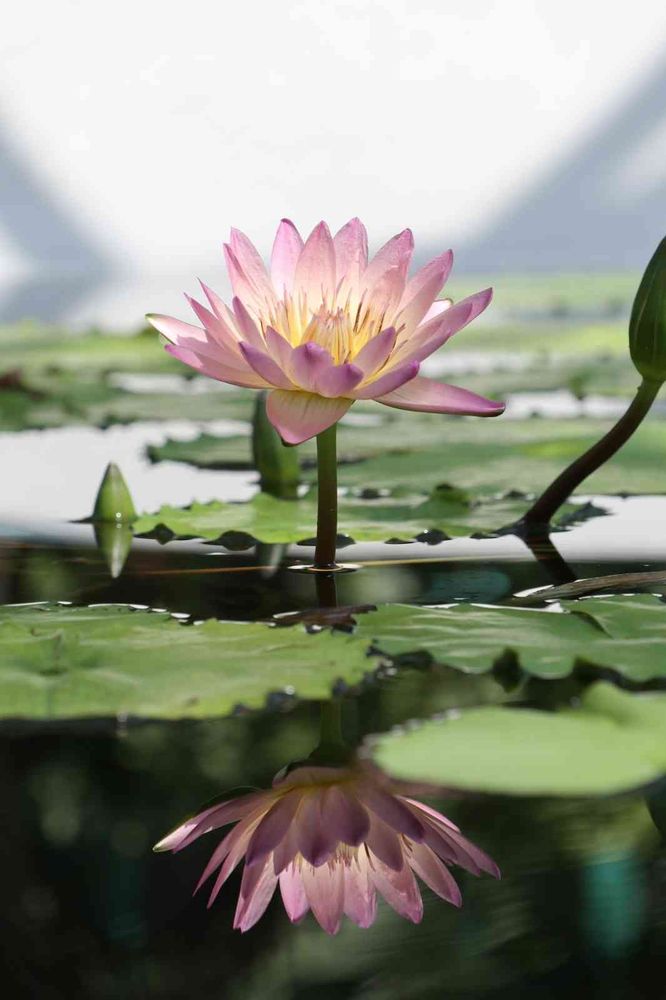 水面に鏡のように映るスイレンが、とても美しいですね✨