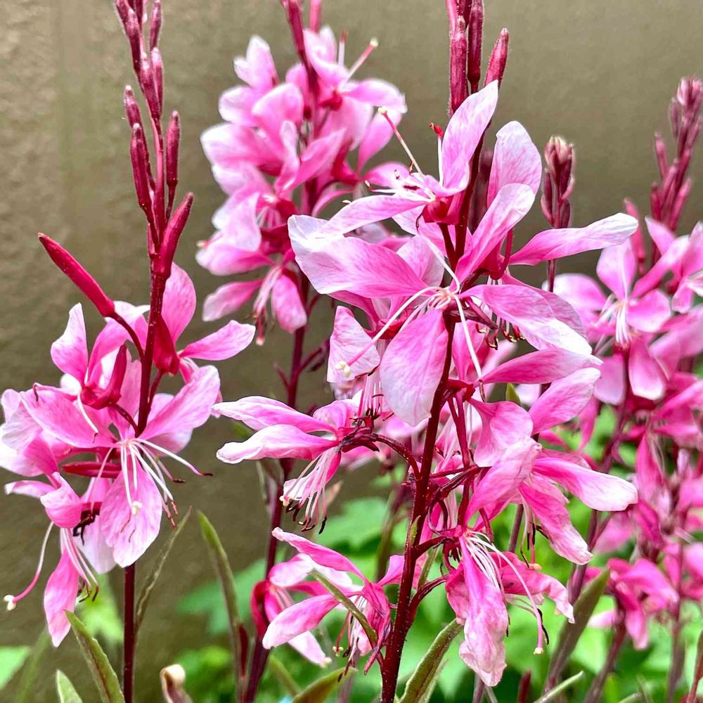 フワフワ蝶々🦋のように咲くガウラしか見たことがありませんでした。色も淡いピンクか白が多いかと思っていましたが、こんなに濃いピンクも可愛いですね!😊💕💗