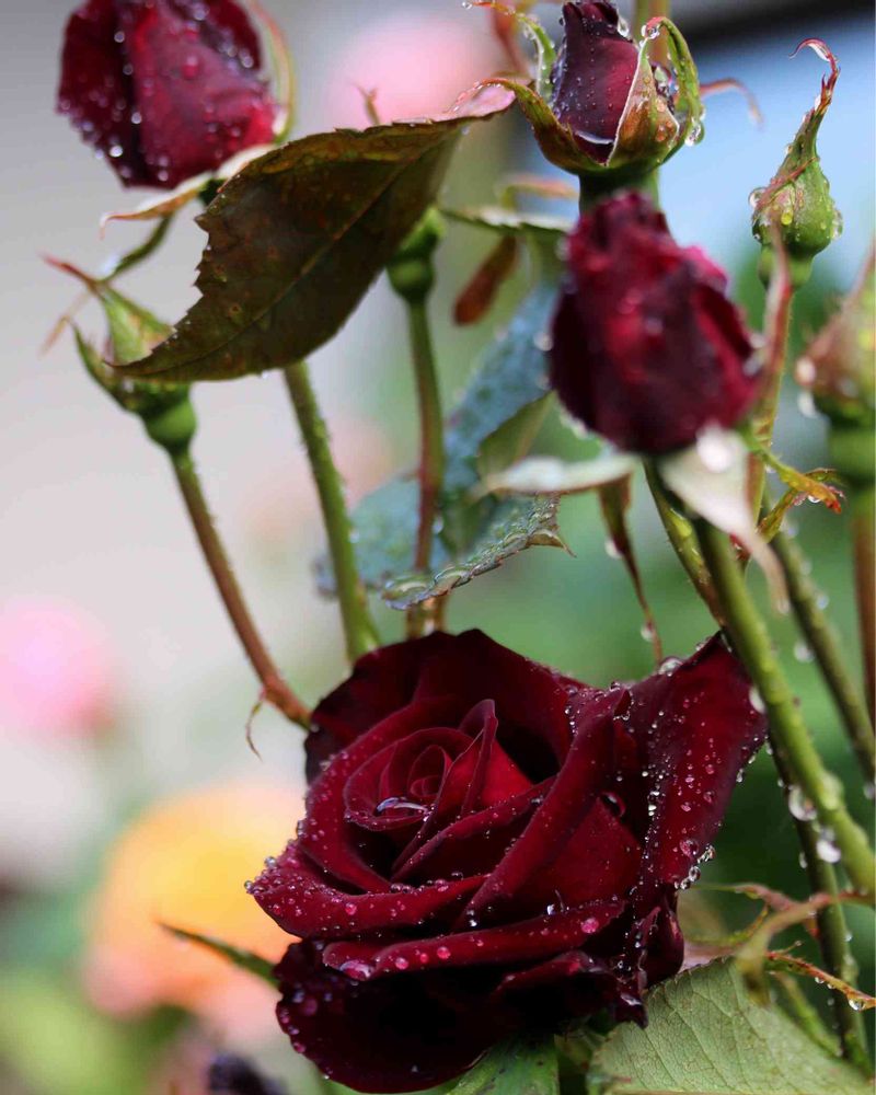この色とベルベットのような花びらをバラを育て始めた頃に、バラの家実店舗さんでカットしてたくさん生けているのを見て、こんな風にしたいと育て始めたのです。