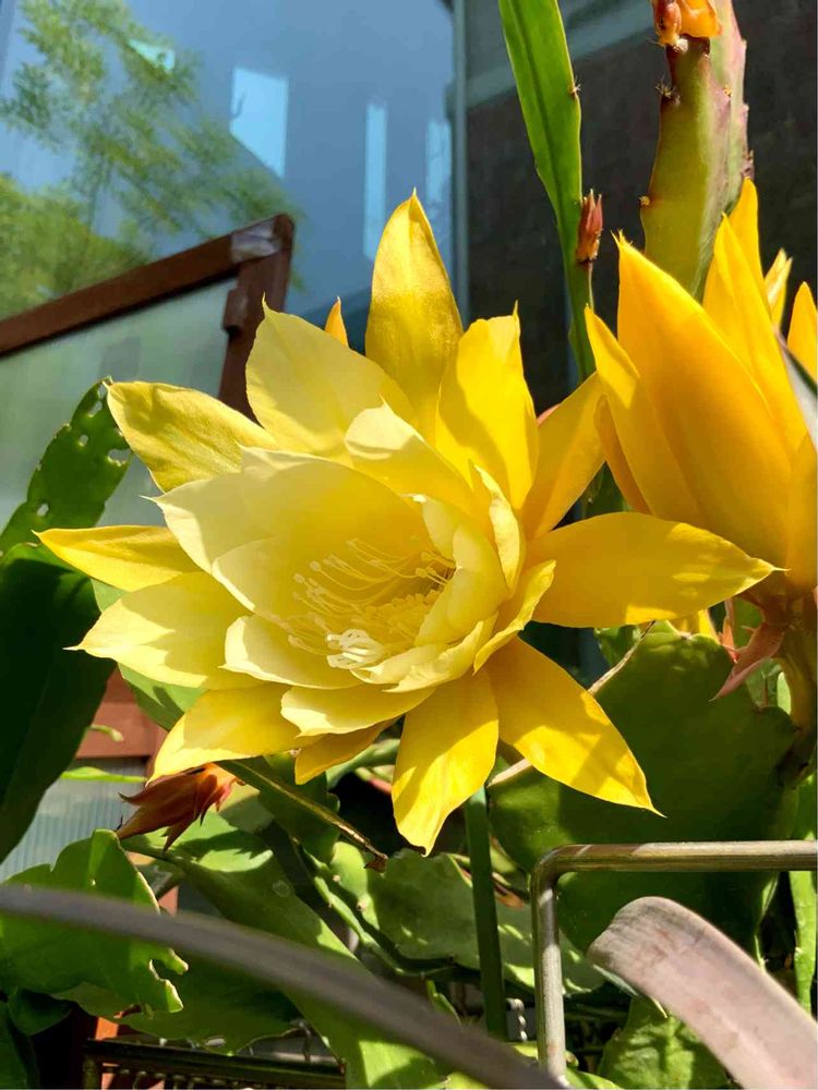 黄色のクジャクサボテンが咲きました。