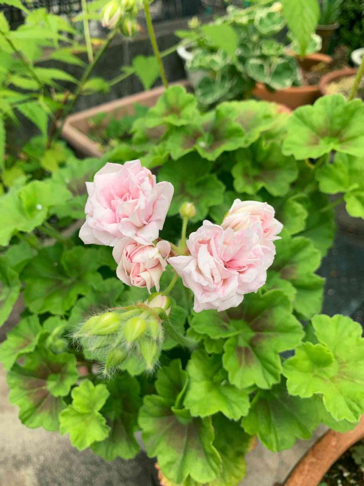 ゼラニウムのミルフィーユが花を咲かせました。蕾みがたくさんあるのでこれからが楽しみです。