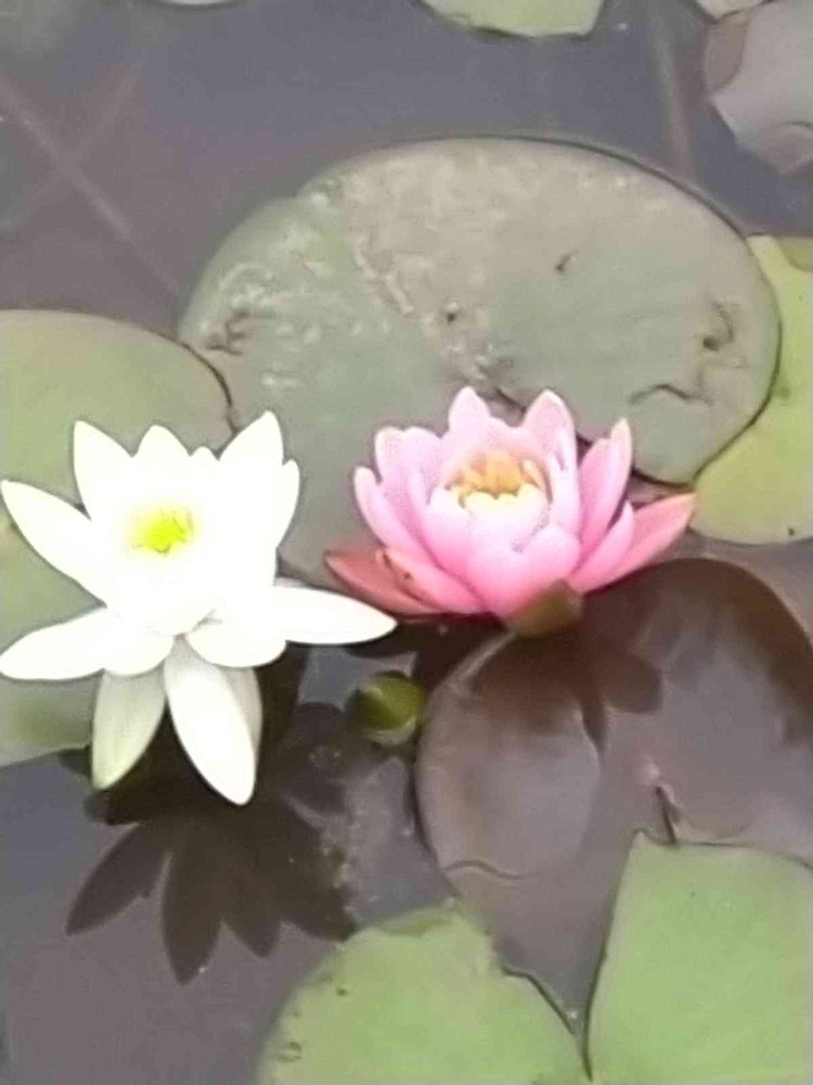 せせらぎ公園の紅白の睡蓮が寄り添って咲いていました💗💟