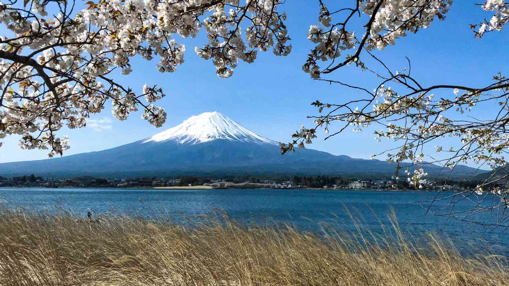 富士山と河口湖と桜