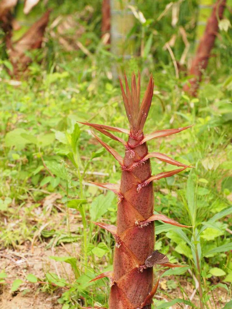 タケノコに蝶(蛾?)が止まってます、